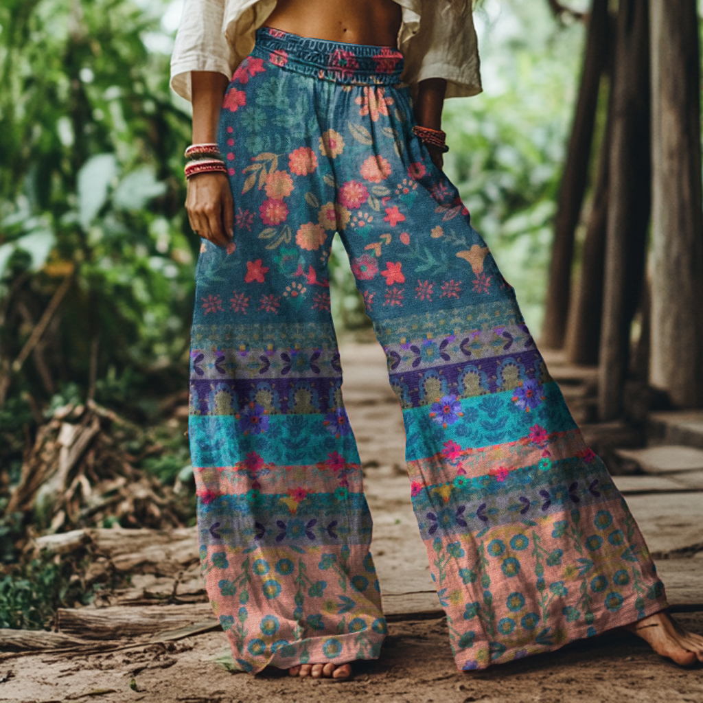 Vintage Bohemian Floral Print Loose Wide-leg Pants