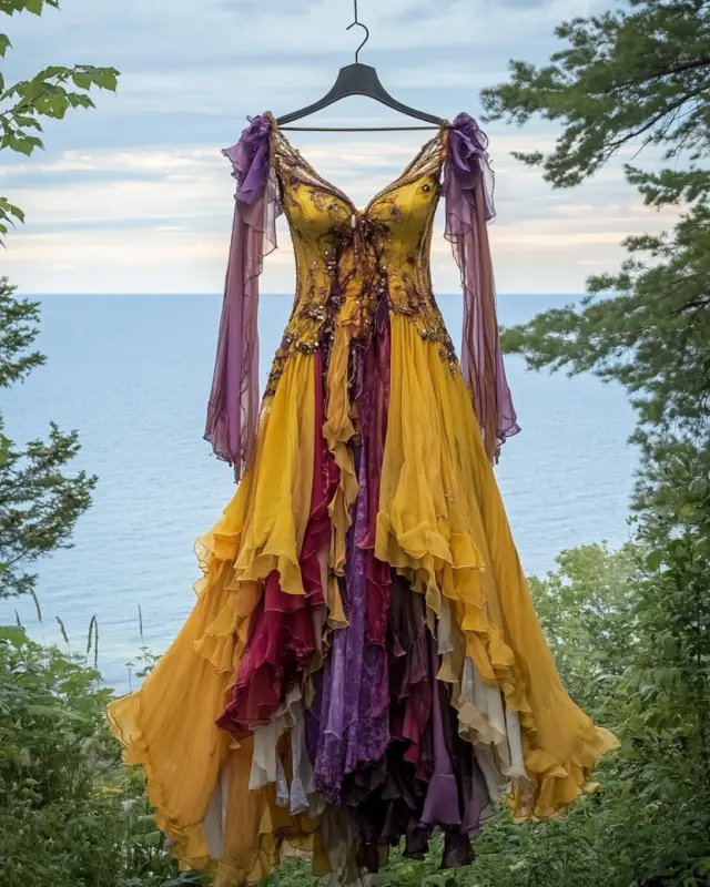 I chose this dress because I like its unique style, simple tailoring, and the perfect combination of multiple colors. The texture of the clothing is enhanced by color and a unique and exquisite taste, showing unique, pure, strong, powerful, and fearless. Showing a delicate, luxurious, unique, and elegant femininity.